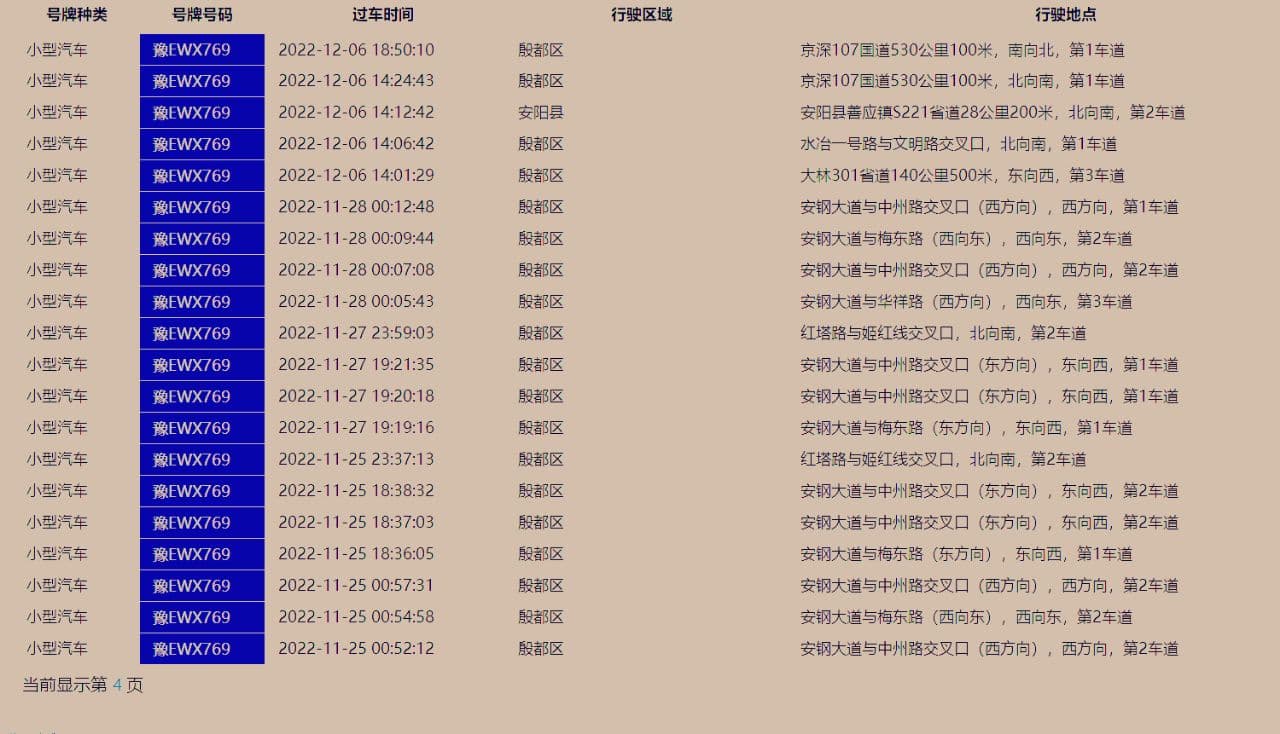要查询车辆轨迹,需要提供的信息是车牌号。目前的车辆轨迹默认出市区版本。